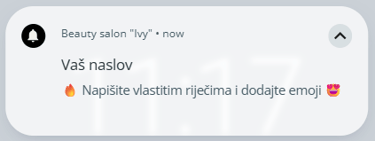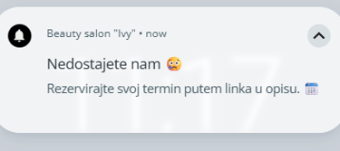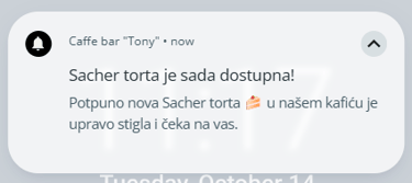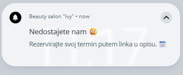 Automatska PUSH obavijest šalje se 28 dana nakon posljednje kupnje. Podsjeća klijenta da se ponovno vrati. Vrijeme podsjetnika je podesivo.